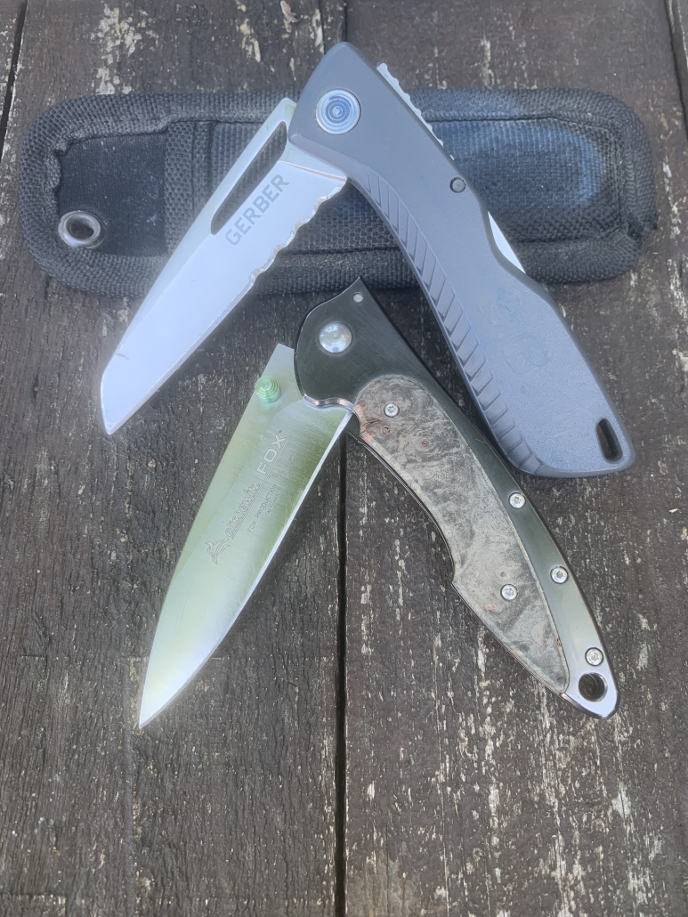 One is a FOX Knives and stamped on the blade is:  ‘Italy’ Elishewitz Fox FOX PRODUCTION 456  ITALY-440