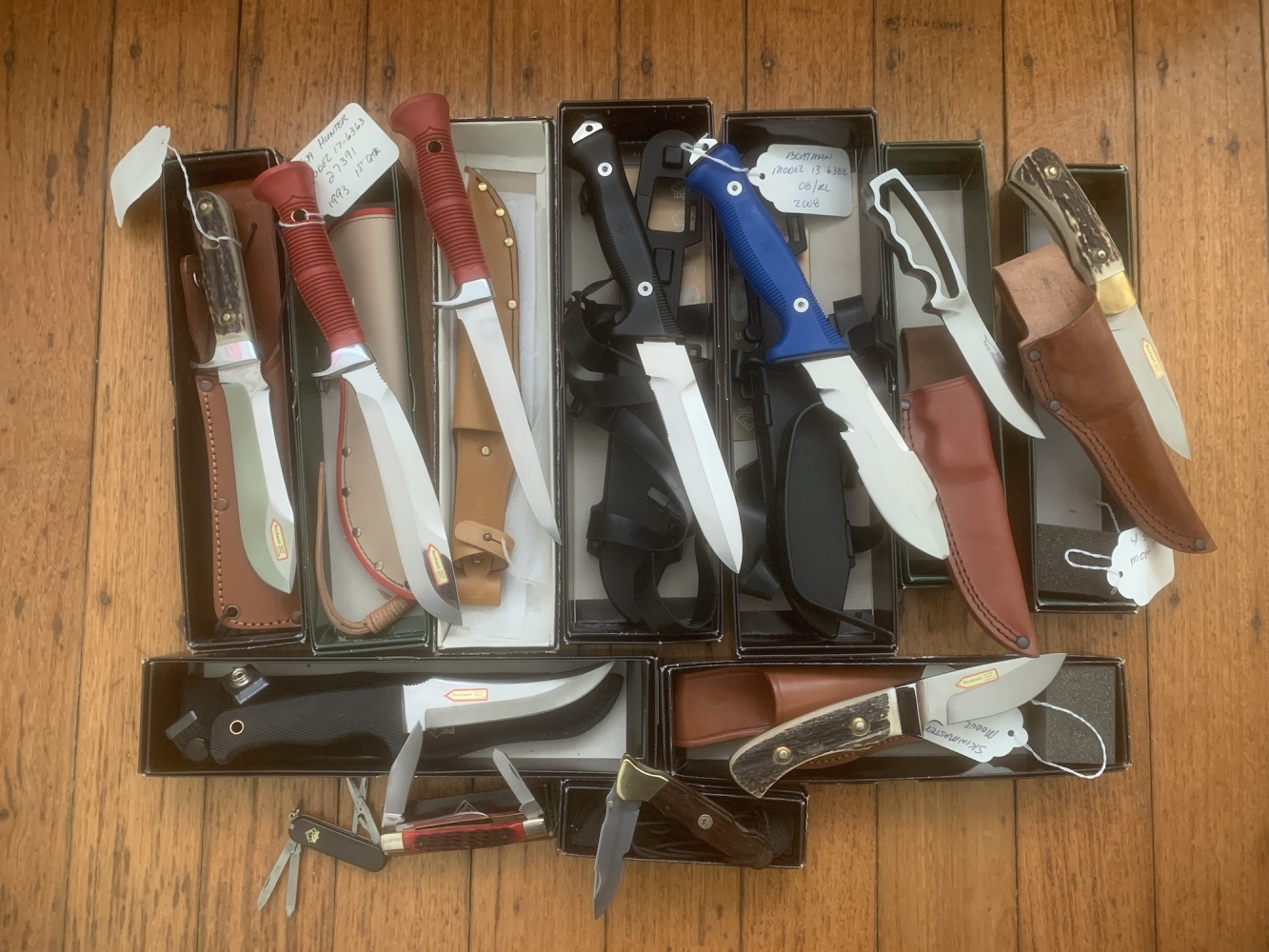 Rare and hard to find Fixed Blade and Folders from the 1980’s-early 2000’s with many in their Black boxes with Tags etc and too many to list here.