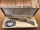 Totally unused and almost mint condition with a beautiful Cocobolo hard wood contoured handle and in a custom made Red/Brown Molded Leather sheath and one of the best examples of this classic Boker Integral classic knives we have come across.