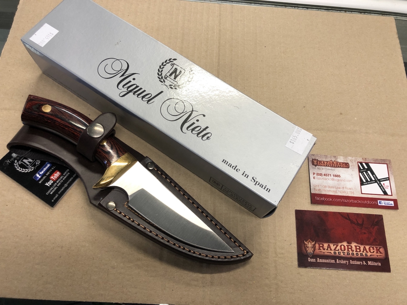 Miguel Nieto Gut Hook Skinning Knife with leather sheath
