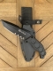 It is made from one solid slab of 5/16” 1075 instead of the usual 1095. This was to provide better impact resistance with only slightly less edge retention. Its large 5.25″ blade will chop through just about anything you put in front of it. The spike on the back is double-edged to provide maximum damage (2.18″ on the top side, 1.88″ on the bottom). The long handle with grippy Black Linen Micarta gives great reach and power with every chop. A high quality black leather sheath is included with two snaps to secure the ax in the sheath. The sheath was designed simply as a blade cover, not as a belt sheath (for safety reasons). There are small loops on the back that can be used to secure it to a pack or other MOLLE gear.